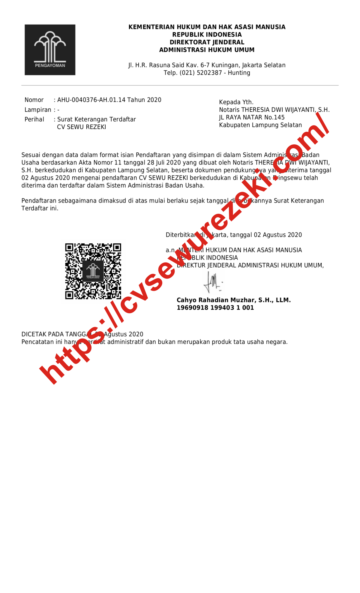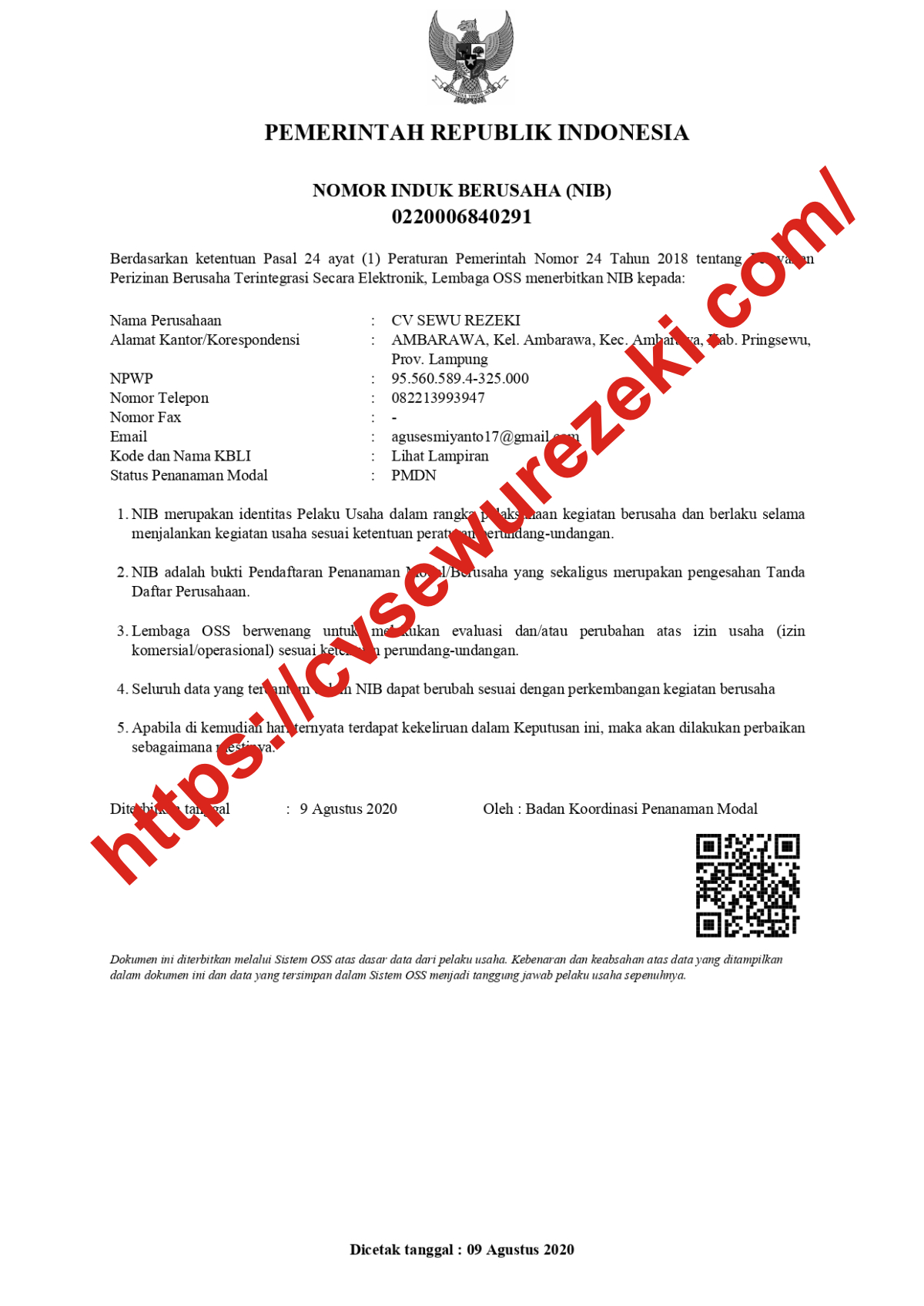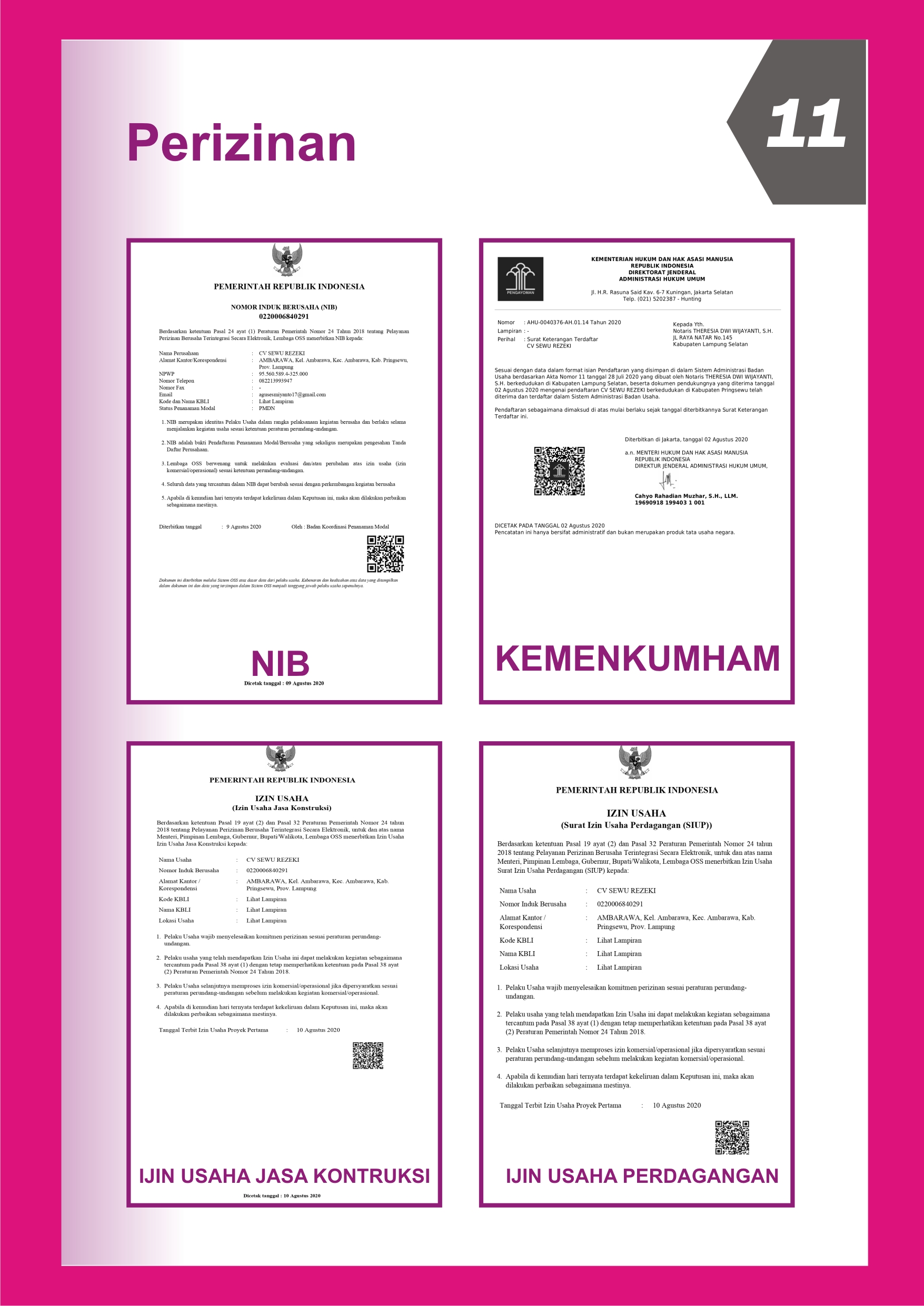 Berikut fotocopy data legalitas kami :