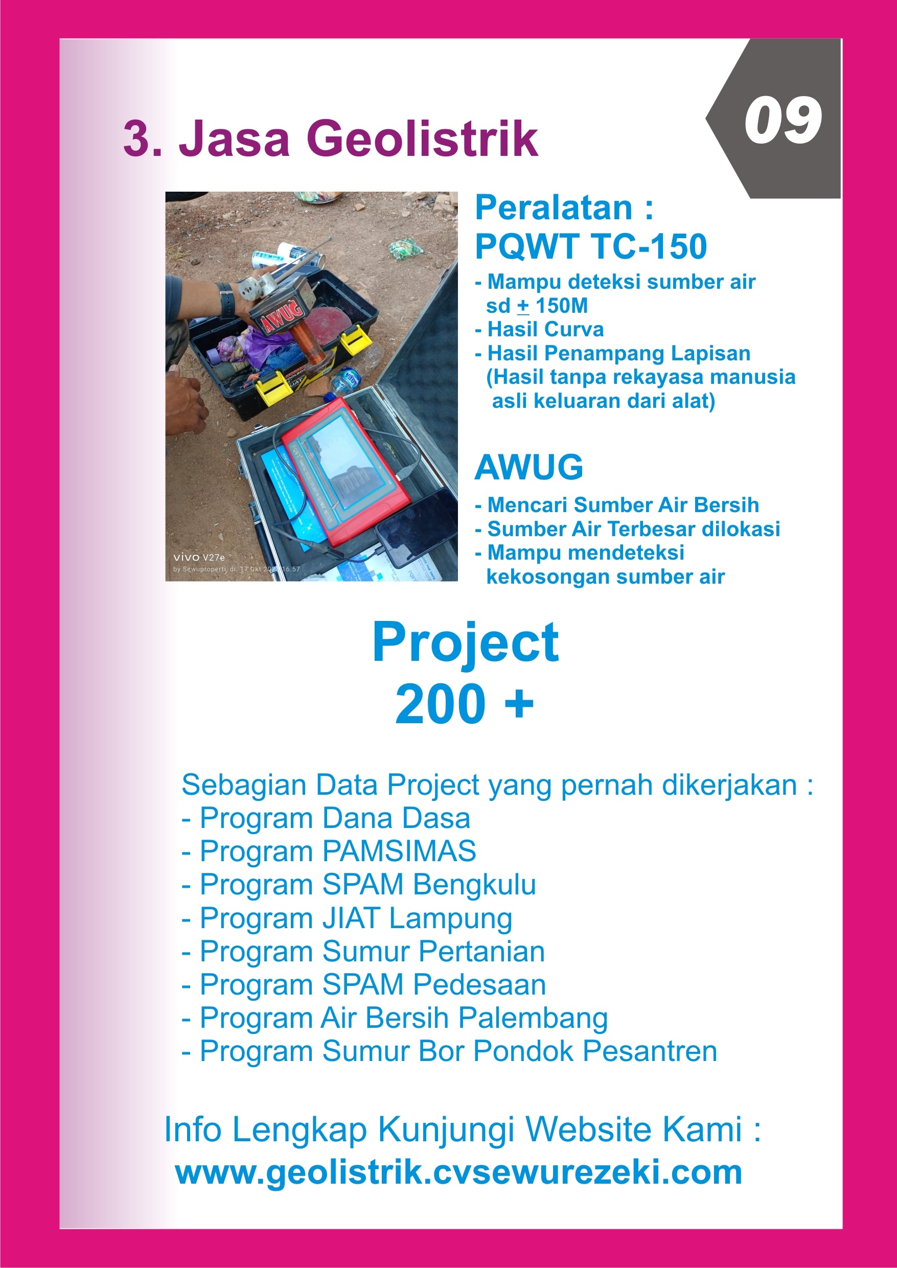 Kami Juga Menerima Jasa Geolistrik Digital (Pencarian Titik Mata Air Untuk Sumur Bor)